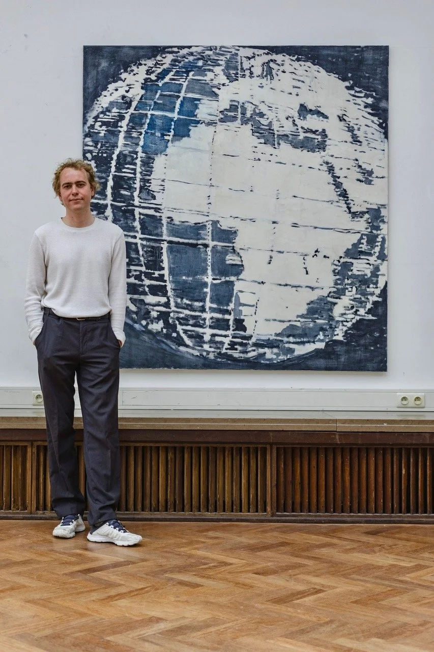 Karsten Krogh-Hansen (Oslo, N, 1997) was selected by the jury for a series of paintings exploring the evolving consumption of imagery in a contemporary culture shaped by technology, popular culture and nostalgia. Krogh-Hansen actively archives digital imagery, collecting fragments from the vast and shifting stream of visual culture. Through repetition, serial gestures and subtle variations, he investigates how recurring forms can reveal underlying patterns that mirror human imperfection. Navigating between landscapes, figures, and repetitive forms, he distances himself from his subjects to transform generic scenes into intimate and personal ones. He creates his own distemper paint, using unconventional materials such as animal skin glue, inks, bister, dry pigments and crushed stone. The result is a practice that is both melancholic and subtly humorous, structured yet spontaneous, merging materiality and image in a constant state of tension.